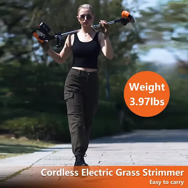 Powerful Performance: Equipped with 6-inch cutting blades, this 21V string trimmer delivers a robust performance comparable to gas-powered models.w99