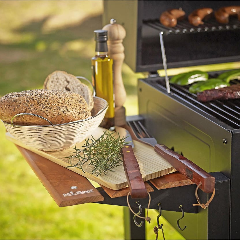 Mesas laterales fijas, Parillo asador con regulador de altura del carbón