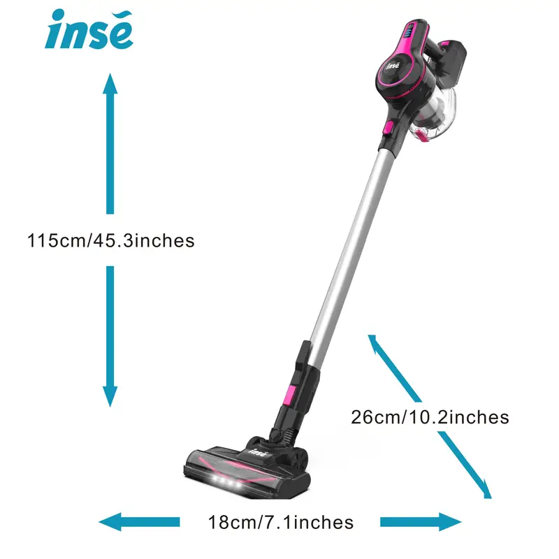 Esta aspiradora está diseñada con un cuerpo ligero y 4 luces LED en la cabeza del suelo, lo que la hace perfecta para una limpieza fácil con una sola mano. Se puede transformar fácilmente en una aspiradora de mano con una herramienta de cepillo 2 en 1 o una herramienta de grieta larga para limpiar los desechos en escritorios o entre los asientos del coche. El tubo de metal para ajustar la altura también se puede utilizar para limpiar el polvo o telarañas en cortinas o techos.