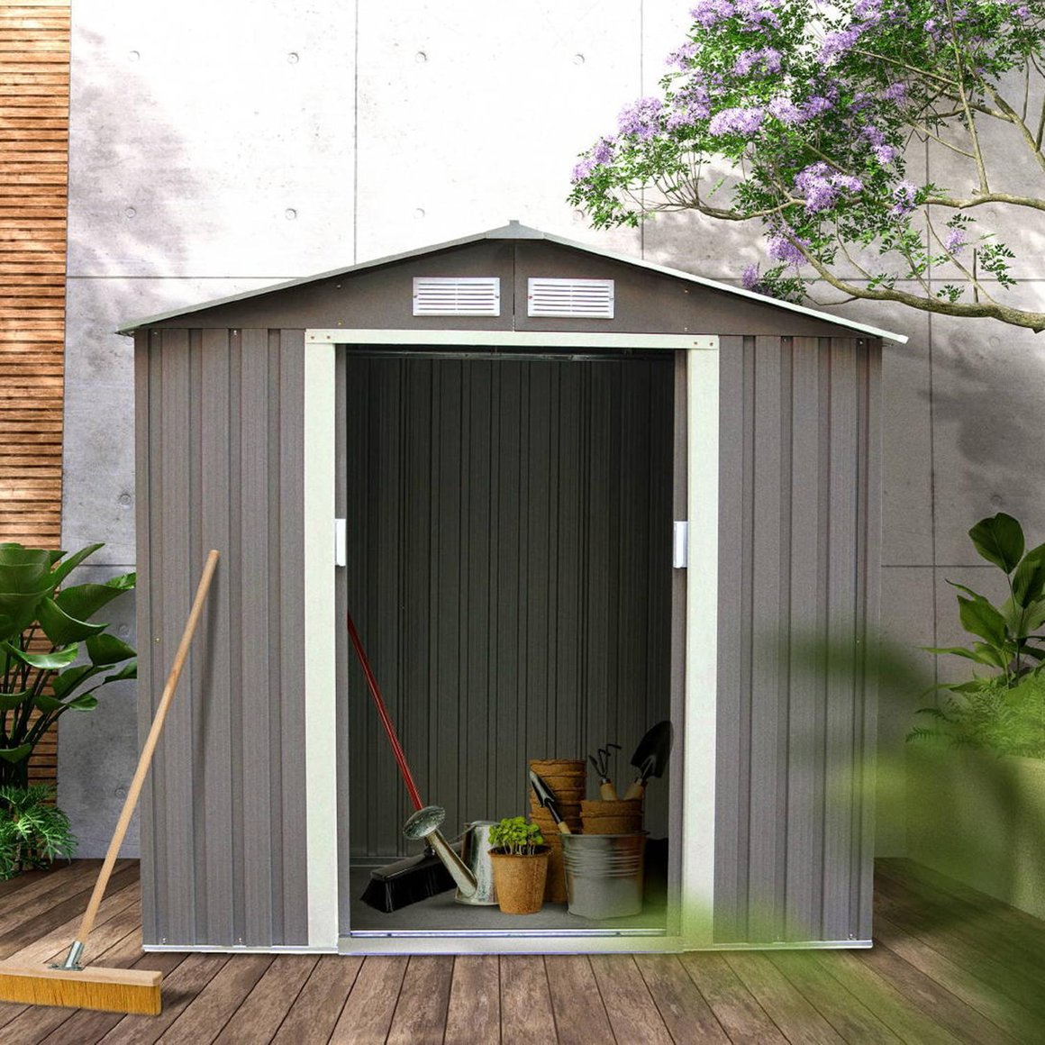 La Bodega de jardín Ergo está fabricada en metal de alta calidad, lo que la hace resistente a la lluvia, el sol y el viento. Su diseño incluye ventilaciones para evitar la acumulación de humedad en su interior. La bodega no incluye piso, por lo que se recomienda instalarla sobre una superficie plana y firme, como un radier, para asegurar su estabilidad. El modelo S1001A WG te ofrece un espacio ideal para guardar todo lo que necesitas en tu patio.CL