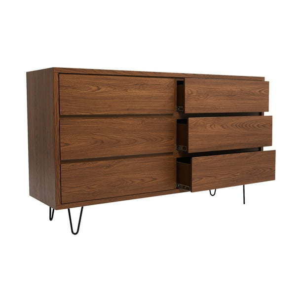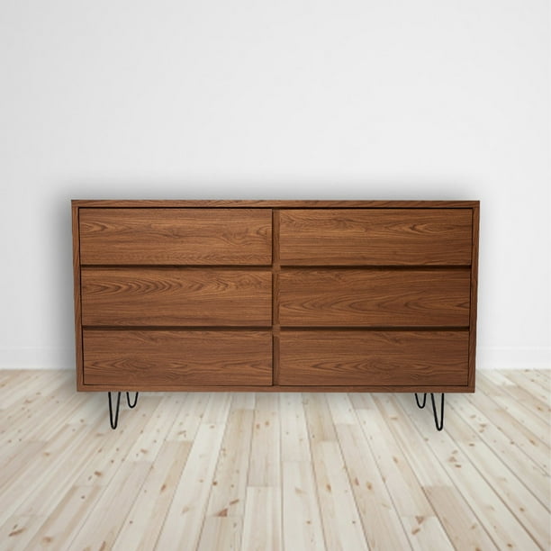 Fabricado en Madera/Melamina. Con acabado en color Nogal. Medidas: 82 x 40 x 140 cm. Comoda look Contemporaneo con 6 cajones y corredera de extensión, estructura de mdf 12mm y frente de melamina color natura, pata de metal desmontable.. NOTA: Los accesorios y otros muebles de las fotografías, se venden por separado. Por efectos de iluminación de la fotografía, algunos tonos de colores pueden variar con respecto al color real.Oferta por tiempolimitado, ven ycómprala ahora.cl