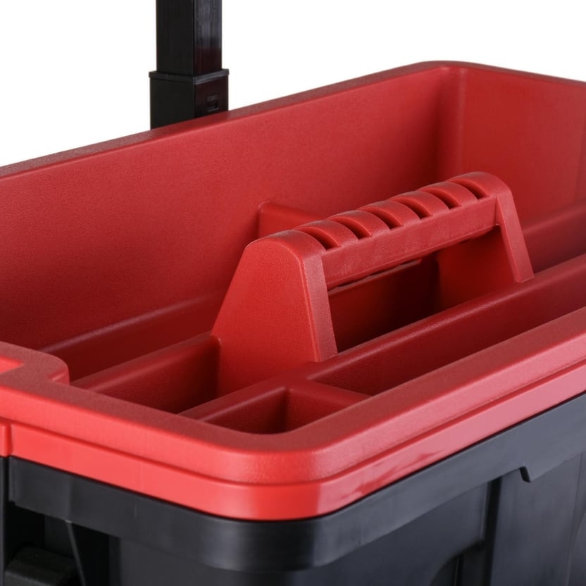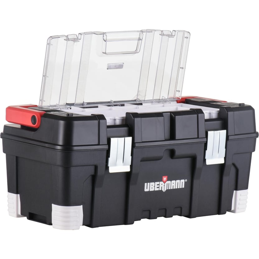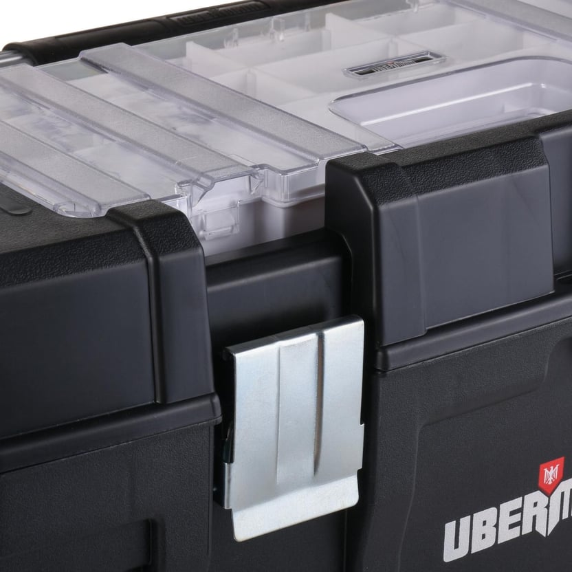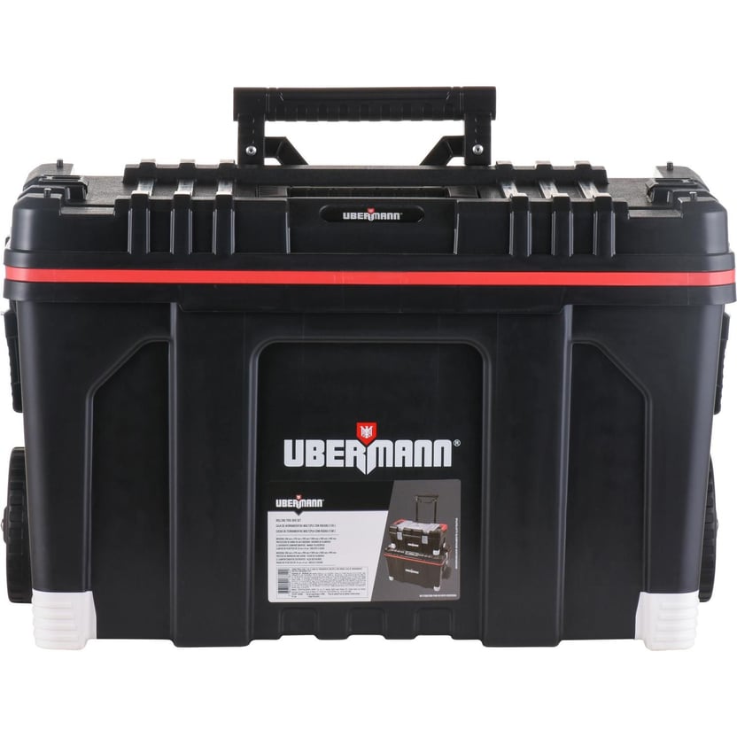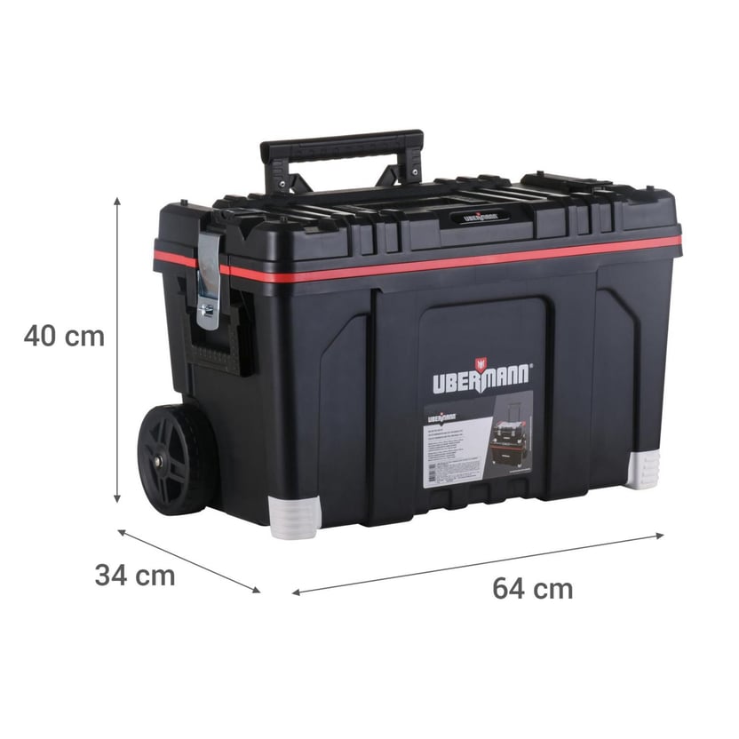 Mantener en orden las herramientas es posible con el Carro Portaherramientas 2 en 1 de Ubermann. Está fabricado en plástico, material de alta calidad que permite almacenar en forma segura cada pieza, garantizando su mantención y utilidad.Con un peso de 9.3 kg, este carro dispone de dos ruedas de 14 cm y un mango extensible que permite trasladarlo sin necesidad ejercer fuerza excesiva. La tapa de la caja superior del Carro Portaherramientas 2 en 1 de Ubermann, cuenta con un organizador con tapa donde se pueden almacenar objetos pequeños como clavos, tuercas, tornillos, entre otros. La caja con mayor capacidad cuenta con un cierre de metal donde se puede instalar un candado y así resguardar el contenido.