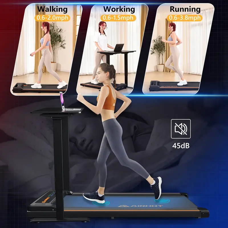 Cinta de correr ancha 4 en 1 debajo del escritorio - Entrenamiento cardiovascular y físico para caminar, correr y trotar - Capacidad de 340 lb, pista para caminar más larga y ancha para un ejercicio eficiente y ahorra espacio de diseño