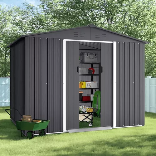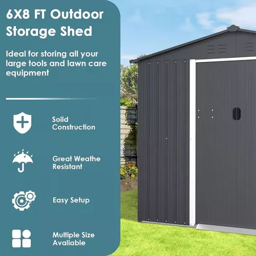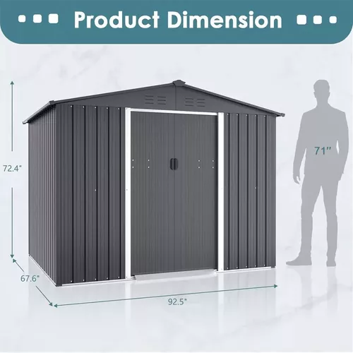 Estilo simple sin fondo y rápido de ensamblar Si necesita un cobertizo de herramientas de jardín perfecto para acomodar las herramientas pesadas, ¡este es! Puede ensamblar las piezas precortadas y perforadas que proporcionamos siguiendo las instrucciones. Siempre solo se necesitan 2-3 horas para que 2 personas terminen el cobertizo de almacenamiento de jardín. Y el estilo simple con gris hará que el patio trasero de su hogar esté más organizado.