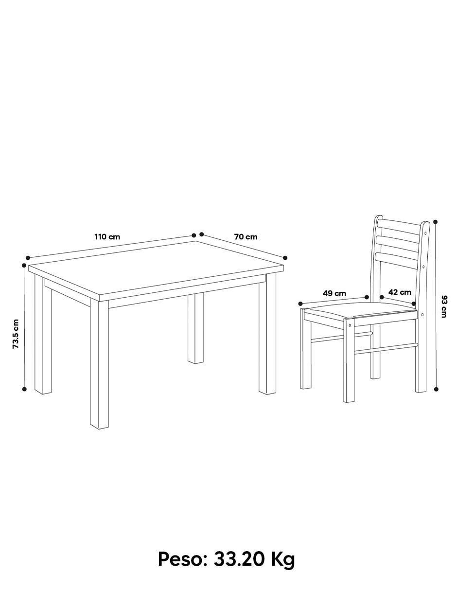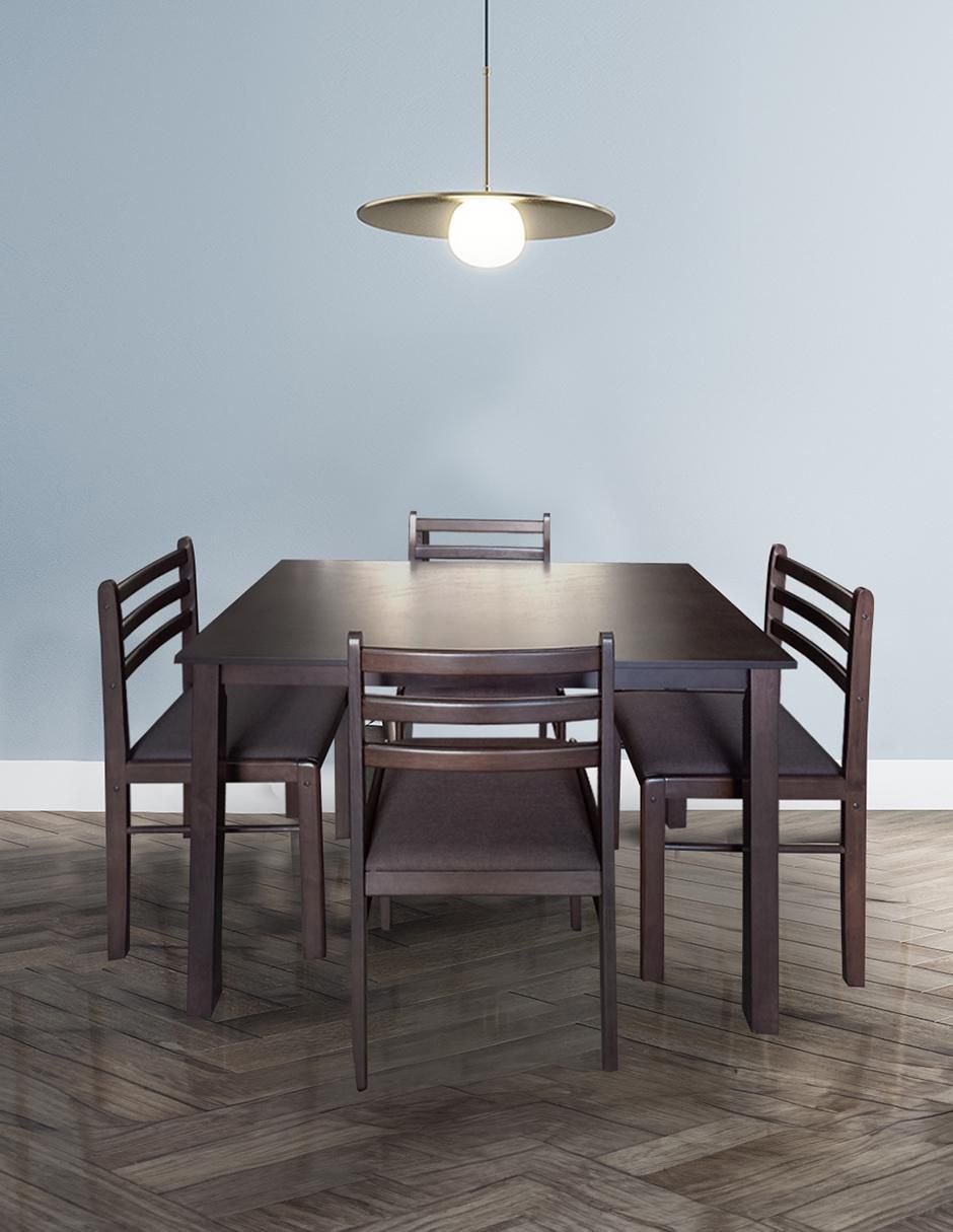 Transforma tu espacio con el elegante comedor de madera modelo Asturia de Mobi, diseñado para brindar calidez y estilo a tu hogar. Este conjunto incluye una mesa rectangular y cuatro sillas que destacan por su diseño clásico y funcionalidad. El color Chocolate, con su distintiva veta de madera en tonos cafés, añade un toque moderno y sofisticado que se adapta a cualquier decoración. Fácil de Armar: El comedor se ensambla de manera sencilla siguiendo los pasos detallados en el instructivo de armado.