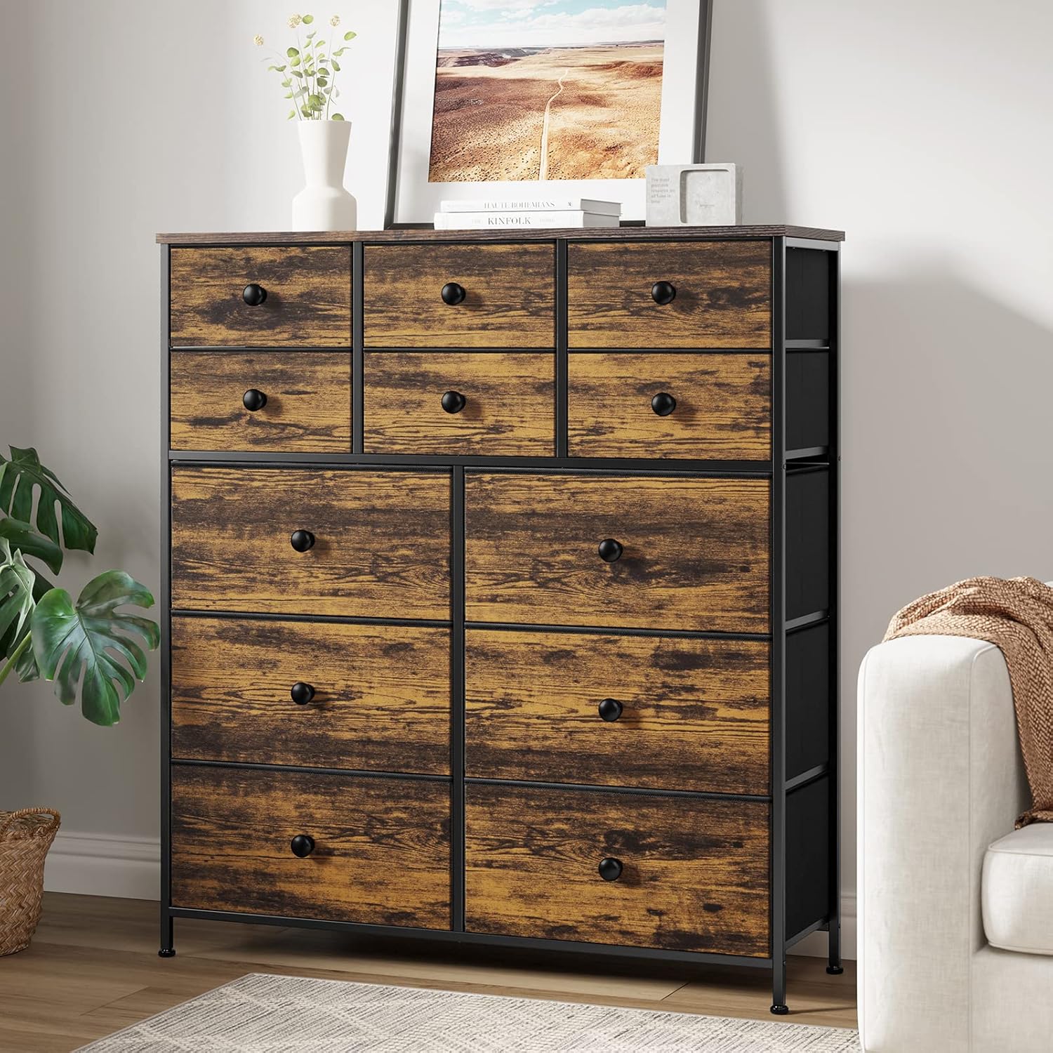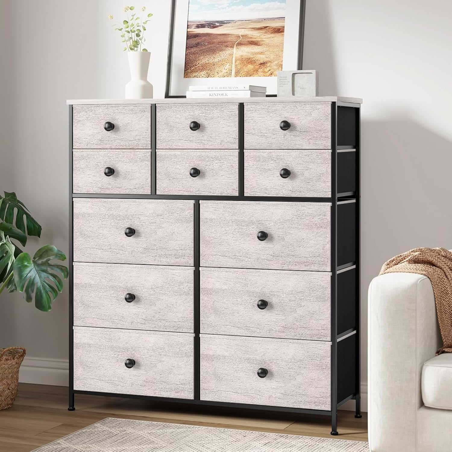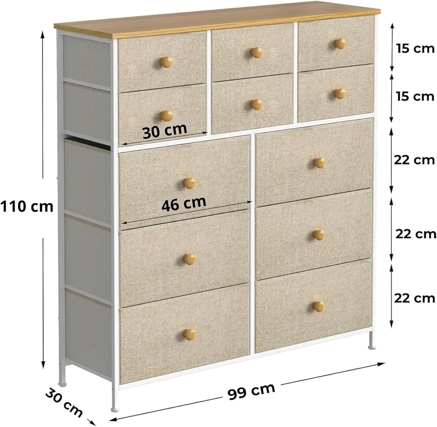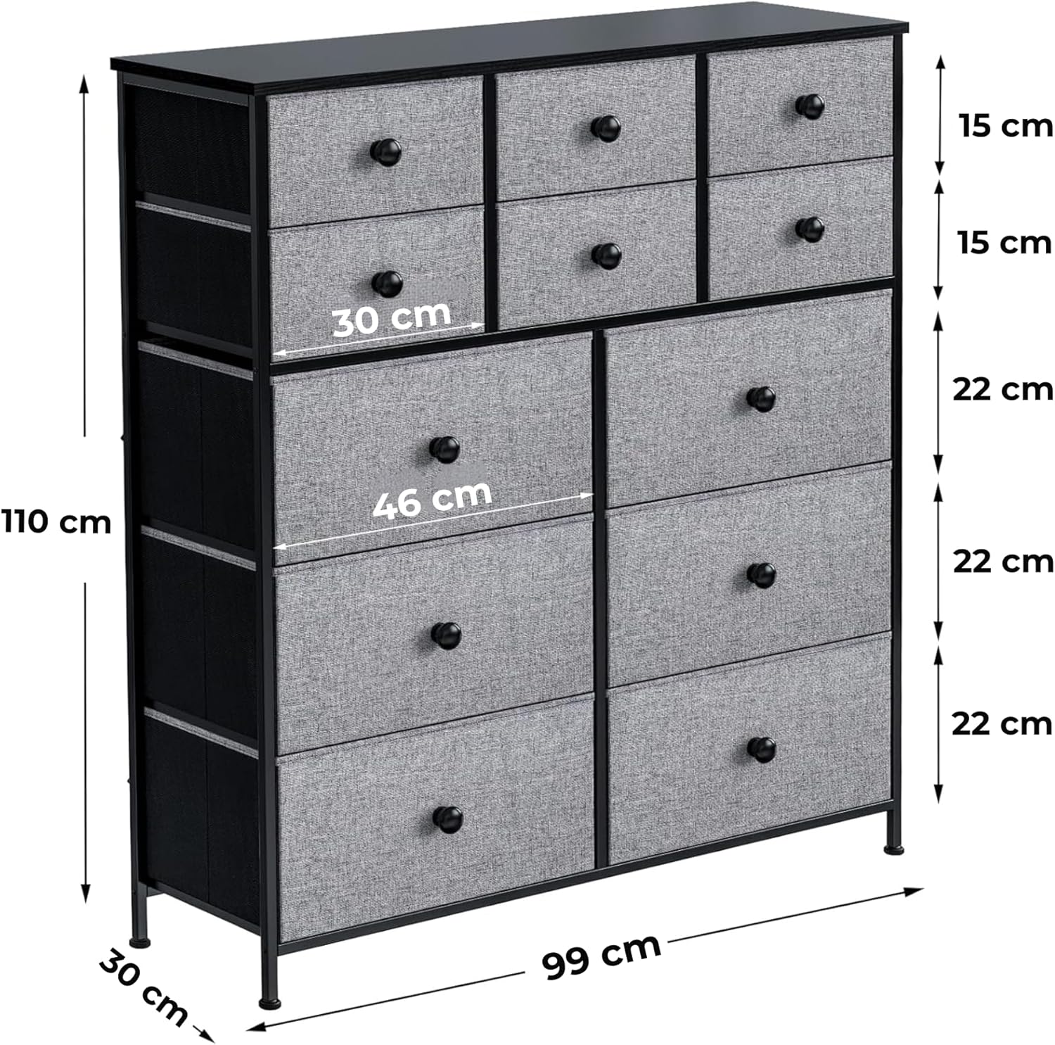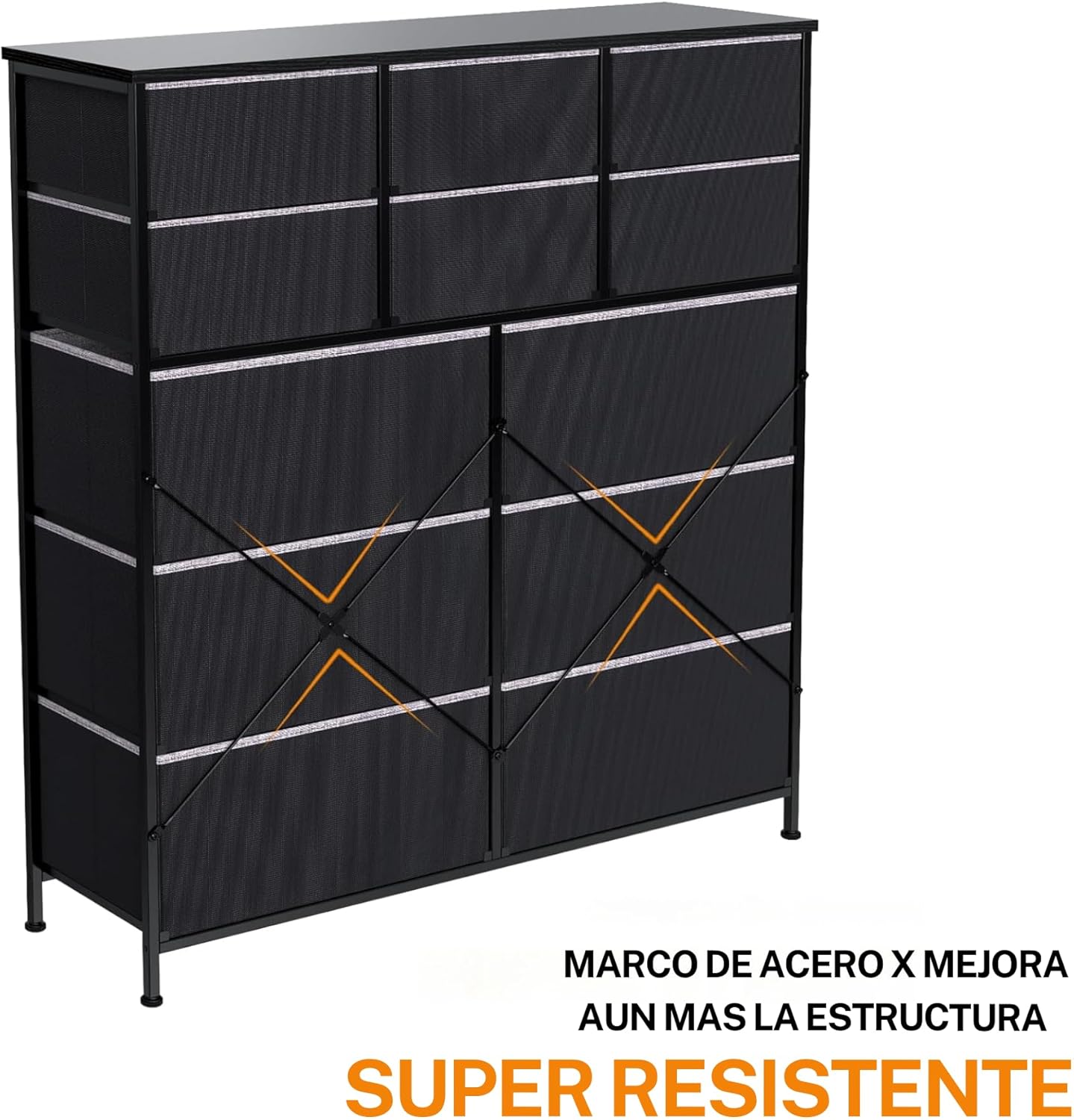 • 【Portátil y fácil de montar】 Tamaño del tocador negro: 99 L x 30 AN x 109 AL cm. Los videos de instalación y las instrucciones lo ayudan a armar fácilmente la cómoda de 12 cajones. Es fácil para usted ensamblarlo en 30 minutos. Este tocador de cajones de tela es adecuado para dormitorios, salas de estar, pasillos, armarios, entradas, guarderías, dormitorios universitarios, oficinas, etc.