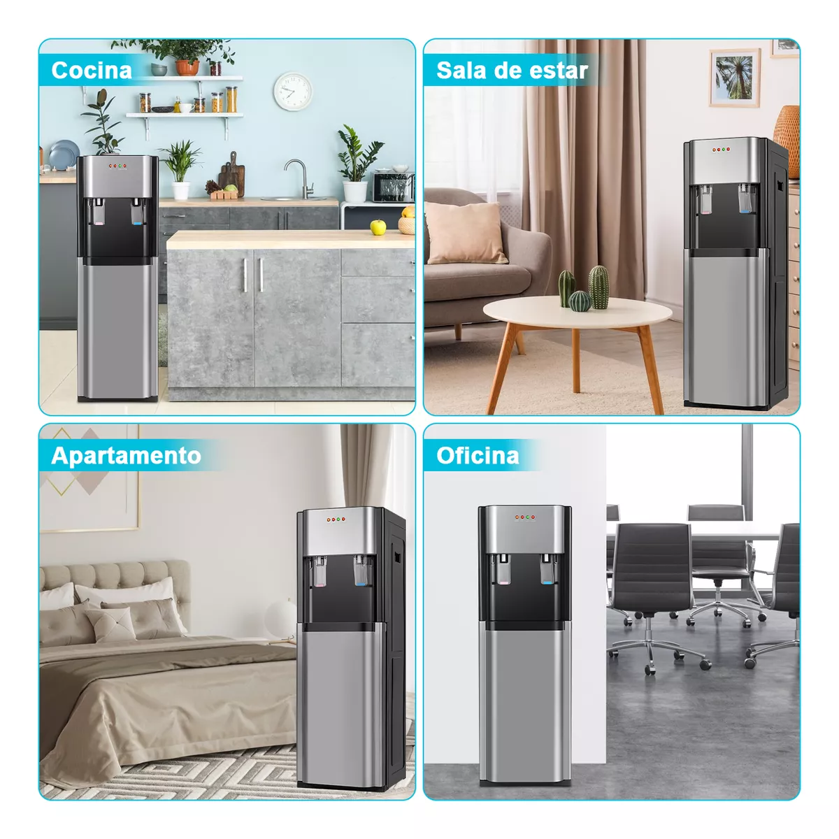 Este dispensador de agua que funciona silenciosamente es ideal para hogares u oficinas donde es necesario mantener bajos los niveles de ruido. Además, el dispensador, que es fácil de limpiar, con bandejas de goteo extraíbles, facilita el mantenimiento y ayuda a que su dispensador de agua luzca y funcione de la mejor manera.