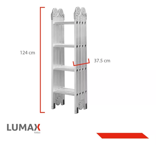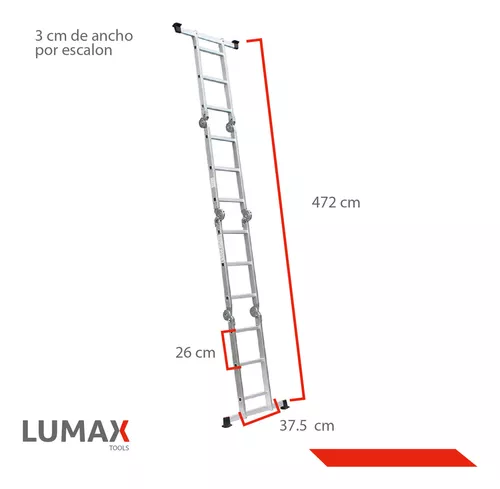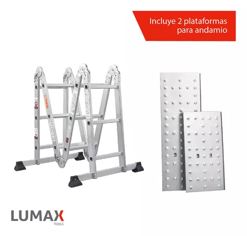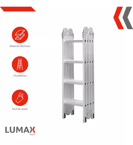 Escalera Andamio Lumax 16 Escalones con Chapones, ideal para todas tus necesidades de acceso en diferentes alturas. Fabricada con aluminio de alta calidad, esta escalera multiposiciones cuenta con características destacadas para ser una herramienta esencial en cualquier hogar o lugar de trabajo.