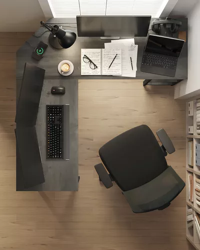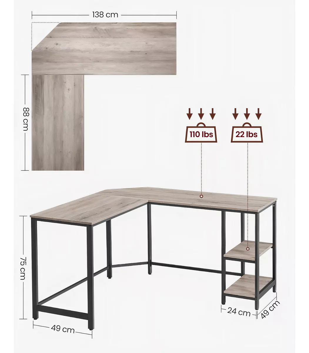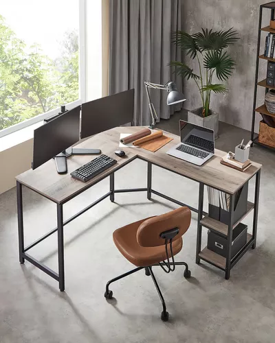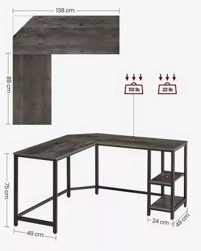 Escritorio Vasagle Para Esquina En Forma De L Color Gris Oscuro