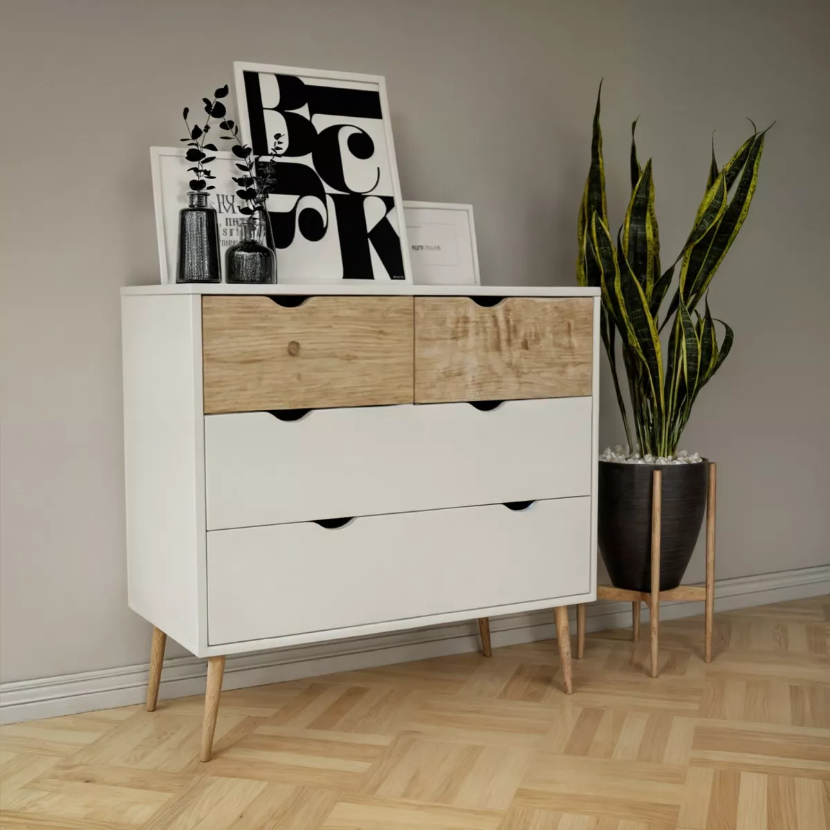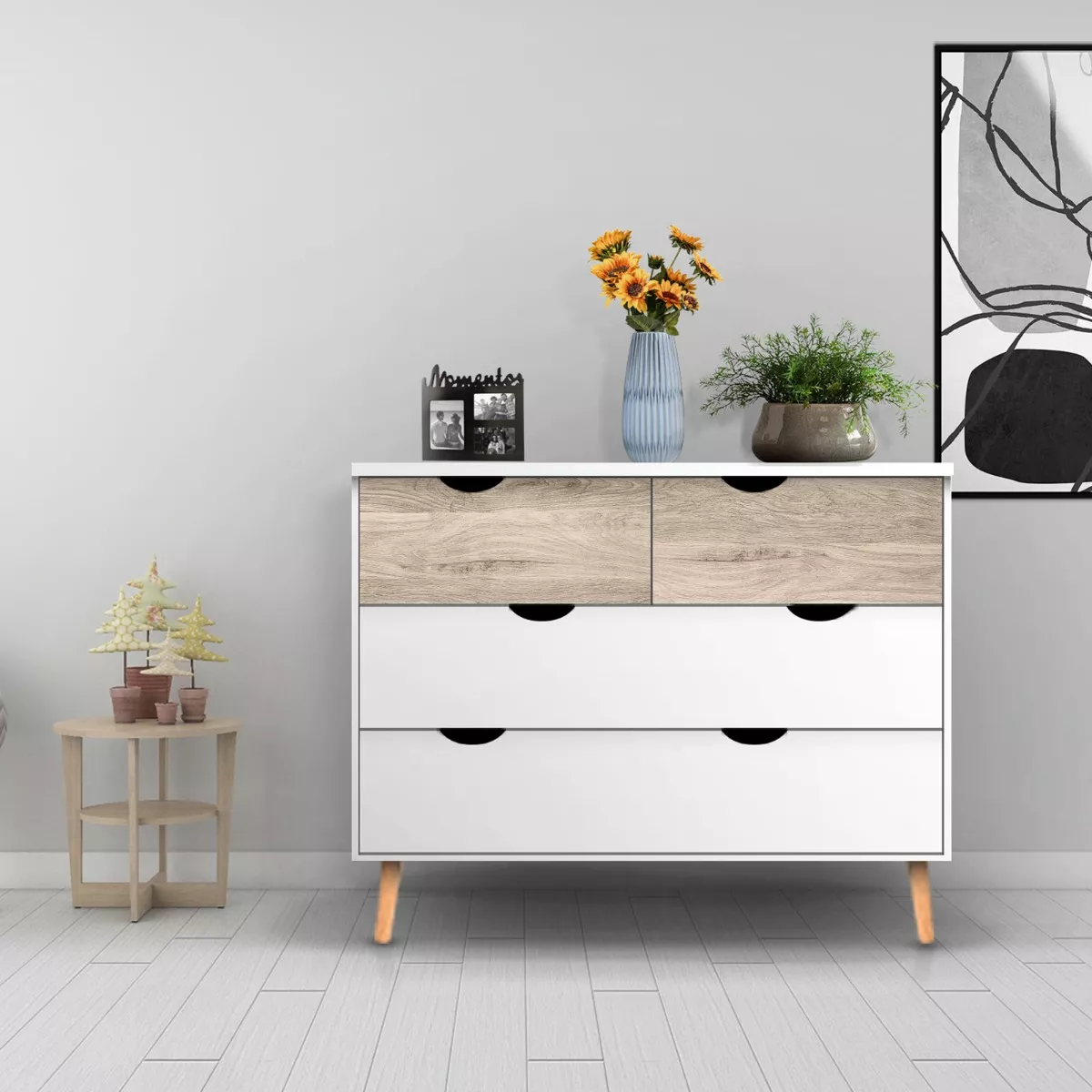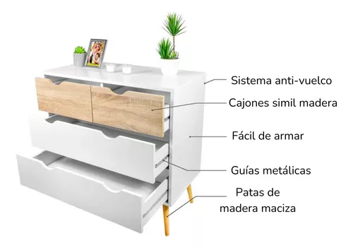 - Con 4 cajones amplios.