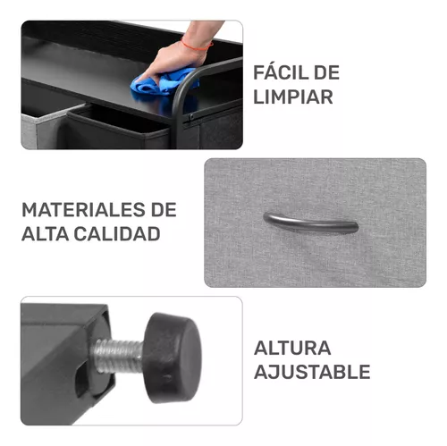 - El material del cuerpo es acero y el material de los cajones es poliéster.