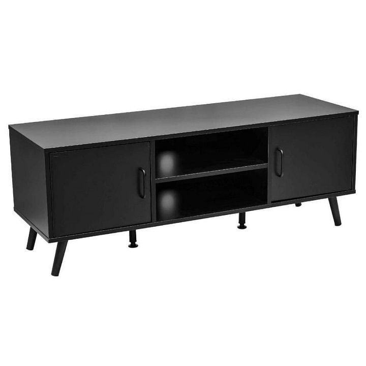Disfruta de este práctico centro de entretenimiento, ideal para colocar tu televisor, tu consola de videojuegos y además contar con espacio de almacenamiento extra para mantener tus espacios ordenados. Gracias a su versátil diseño podrás colocar este mueble de tv en una sala, un cuarto principal, un salón de juegos o un espacio colaborativo de trabajo. Cuenta con una amplia superficie, entrepaños y puertas laterales. Con dos orificios a través de los cuales puedes esconder y pasar los cables hacia la parte trasera del mueble. Está elaborado con materiales de la más alta calidad, los cuales aseguran su durabilidad y resistencia al soportar el peso de tu televisión, adornos u otros aparatos electrónicos. Es muy fácil de armar, solo deber seguir los sencillos pasos que vienen en el manual de armado. Dimensiones totales: 120 cm largo x 47 cm alto x 40 cm ancho. Ancho de las puertas: 35 cm. Ancho de los entrepaños centrales: 43 cm