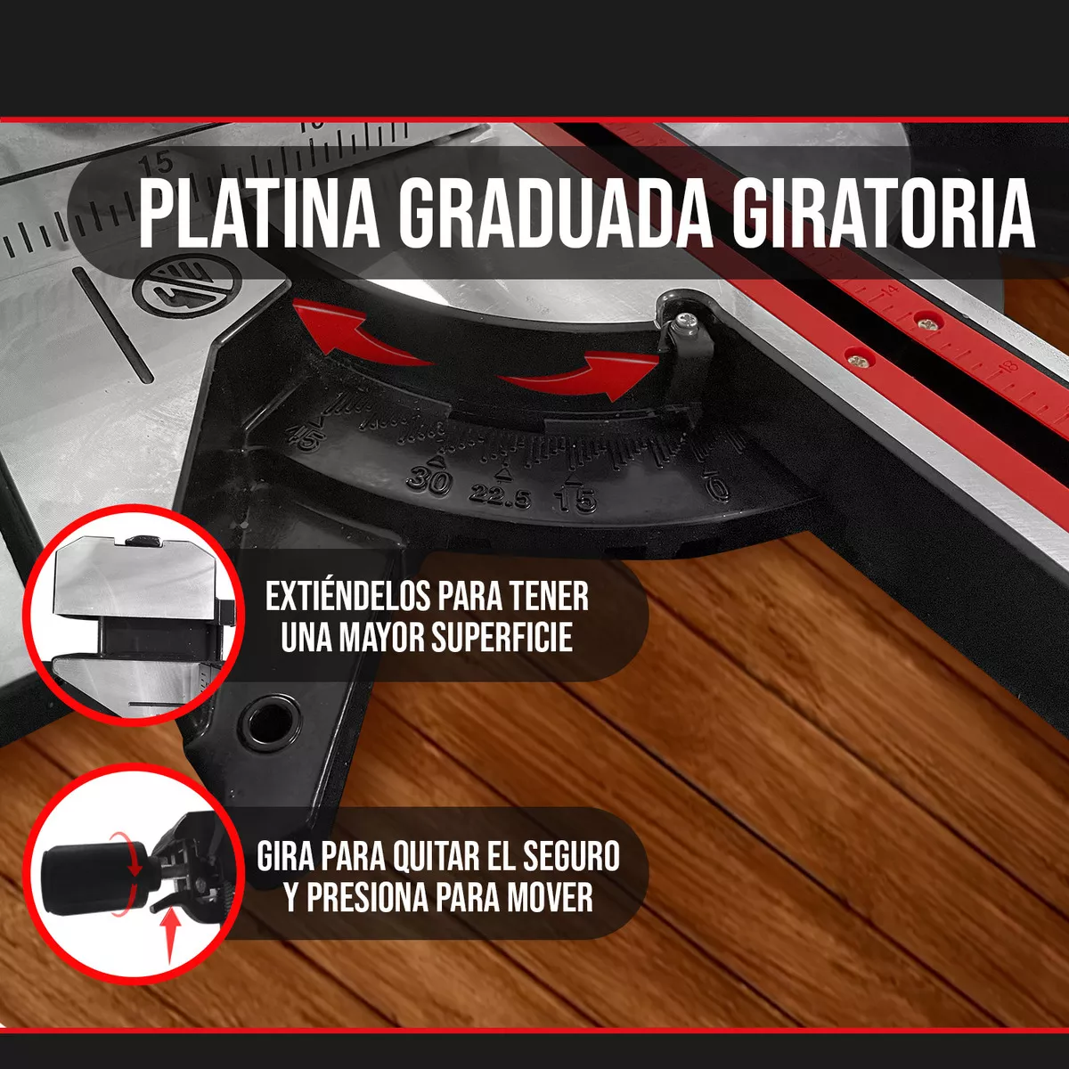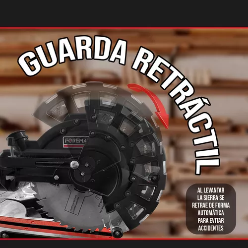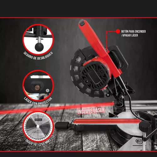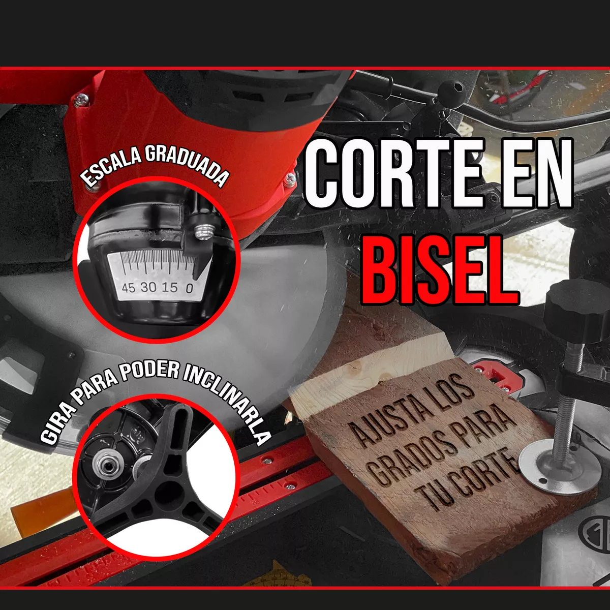 Esta sierra destaca por su versatilidad, permitiendo realizar cortes tanto en inglete como en bisel. El brazo telescópico ajustable amplía el alcance y mejora la precisión de los cortes. Además, incluye una guía láser que asegura cortes exactos incluso en condiciones de baja visibilidad.