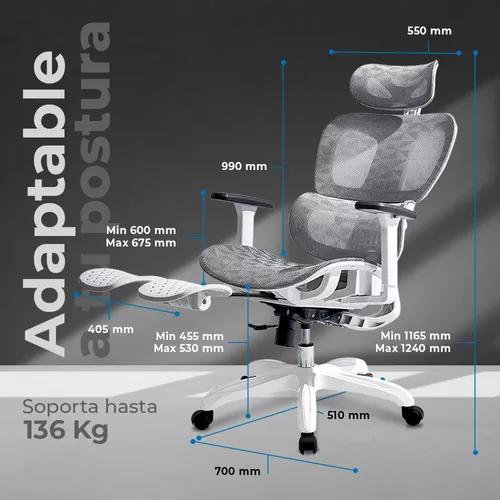 Reposapiés integrado: Relaja tus piernas y reduce la fatiga después de largas horas sentado.