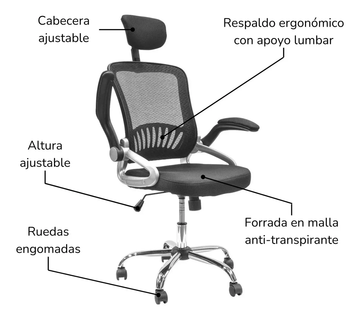 Disfruta de esta cómoda silla, ideal para tu oficina o despacho. Gracias a su estructura firme, esta silla para home office te permite cuidar tu postura y evitar así los dolores de espalda baja o molestias musculares durante tus largas jornadas frente a la PC.