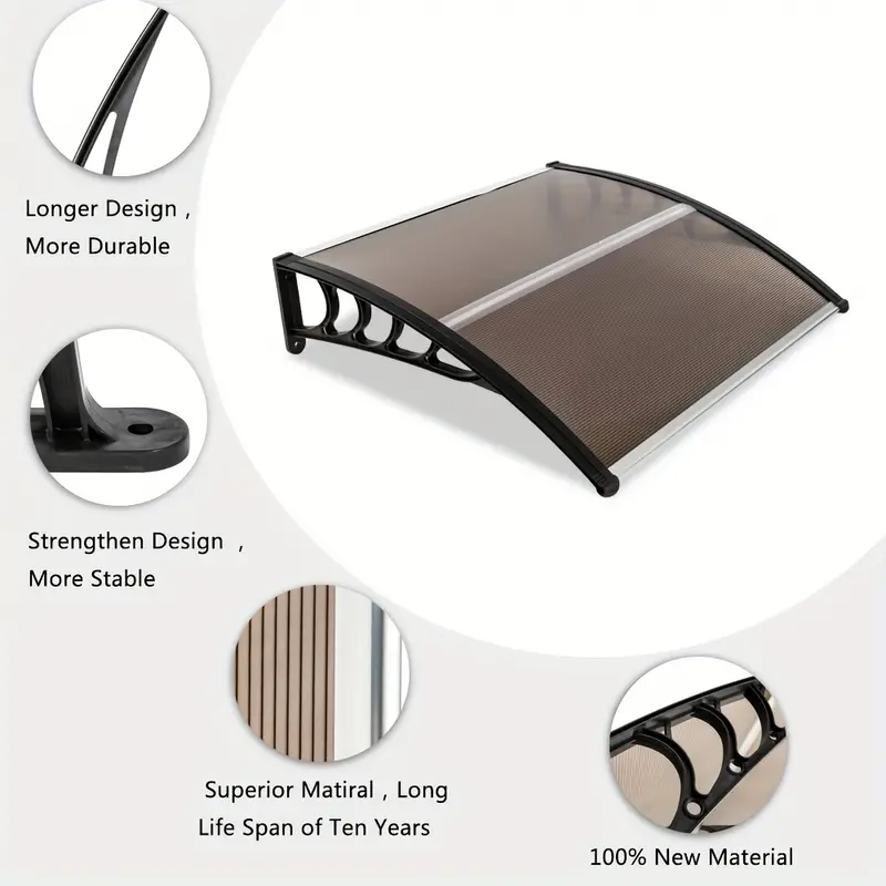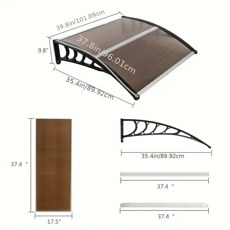 Toldo Para Puerta Y Ventana Con Soportes De Plástico, Panel Parasol Y Tiras De Aluminio Delanteras/traseras, Resistente Cubierta Exterior, 40 X 38 Pulgadas (100 X 96 Cm)