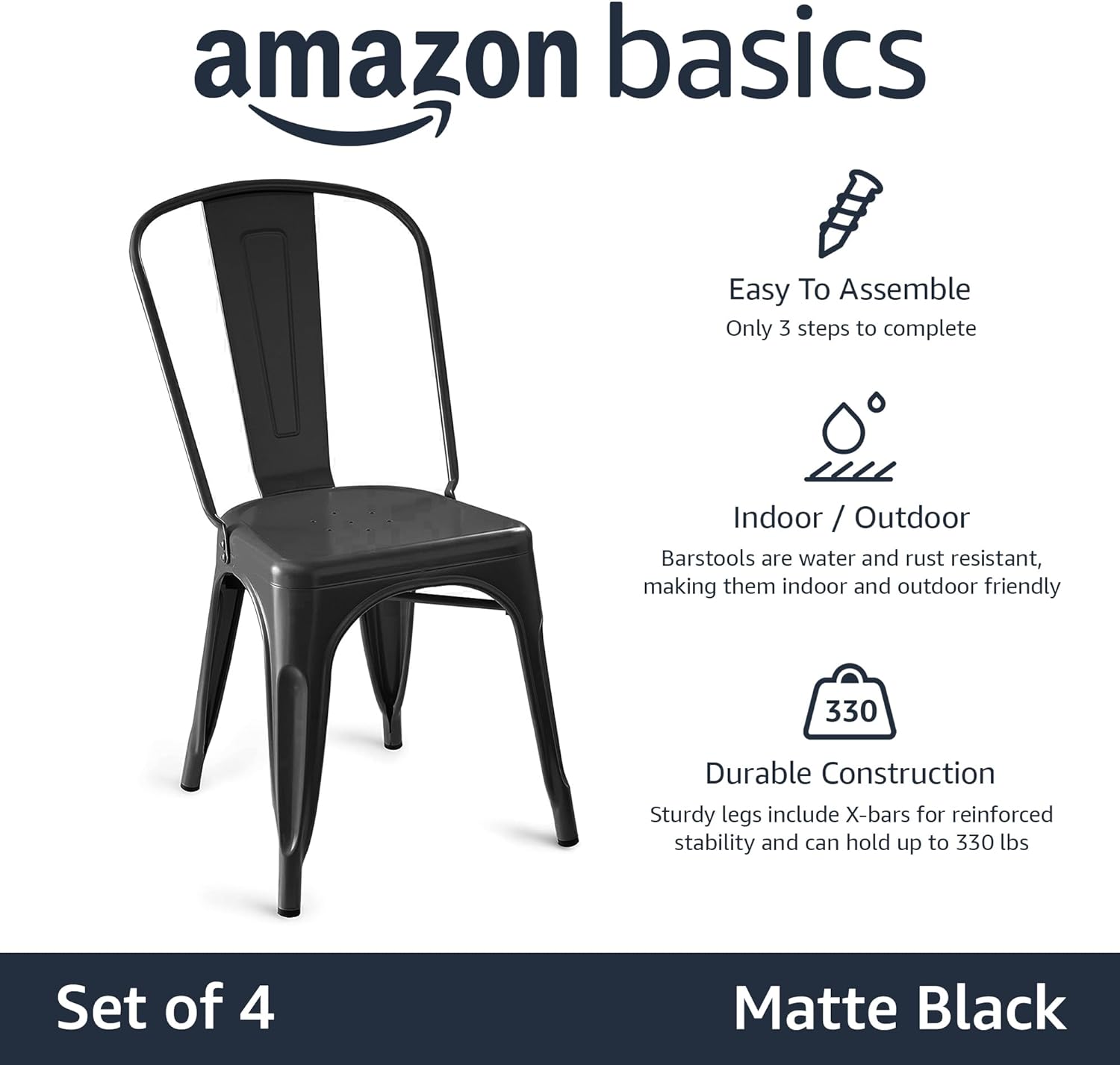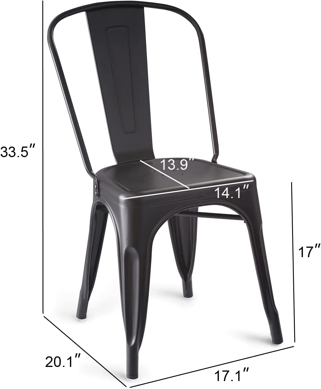 Sillas de comedor de metal, juego de 4, color negro-paquete de valor