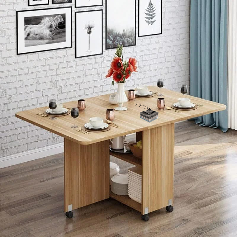 La mesa plegable te permite ahorrar espacio cuando no se está utilizando. Ideal para departamentos reducidos o donde realizas otras actividades además del comedor.