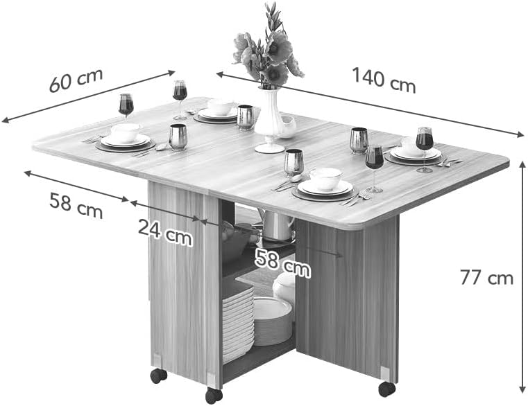 • Medidas: 140 cm de largo x 60 cm de ancho x 77 cm de alto. 24 cm de largo con la mesa plegada.